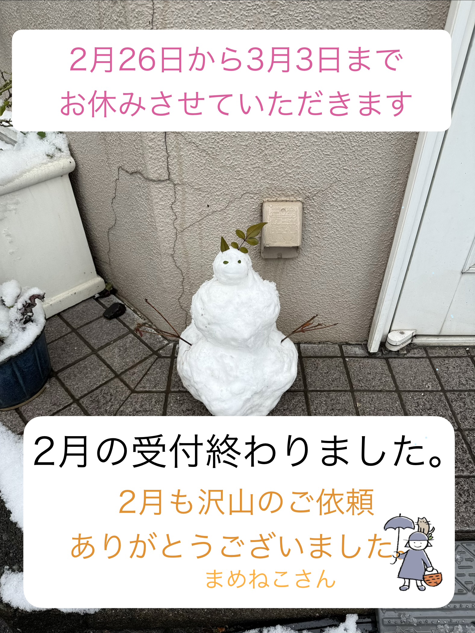 2月受付終わりました。